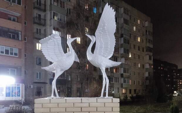 Скульптуру белых журавлей убрали для обновления в конце сентября, они «прилетели» обратно только в середине ноября.