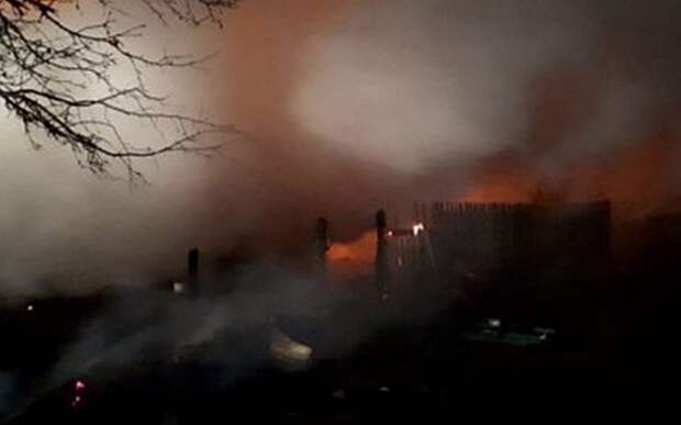 По предварительной версии, пожар начался в одном из сараев, затем огонь перекинулся на деревянный дом.