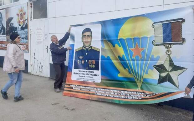 29 апреля на стене Памяти, которую организовал 8 лет назад новомичуринский предприниматель Виктор Чегоряев, установили баннер с десантником Гаджимагомедовым. Это седьмой портрет на стене Памяти. Ранее размещались только родственники семьи Чегоряева, принимавшие участие в Великой Отечественной войны.