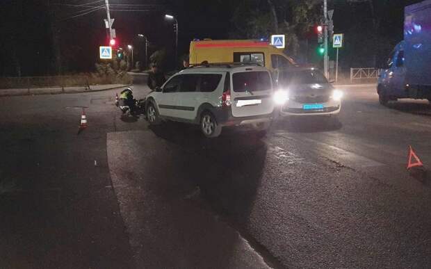 Около 21:00 во вторник на перекрёстке Октябрьской и Станкозавод1ской улиц с Kawasaki столкнулась Lada Largus. 33-летний мотоциклист получил травмы.