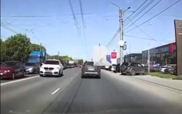 На кадрах видно, как автомобиль, предположительно Renault Duster пересекает сплошную линию и движется по свободной линии встречной полосы.