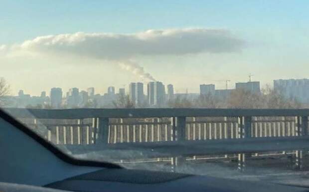 Где был сделан снимок - неизвестно. Судя по снимку, над городом нависло скопление выбросов, напоминающих по форме гриб.