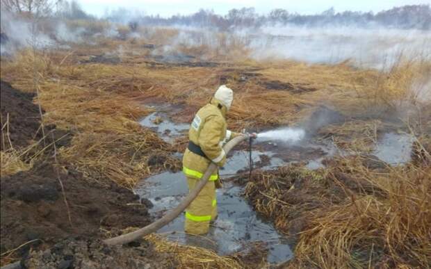 Воду забирают из реки, расход — полторы тонны на квадратный метр, рассказал начальник пожарной части Виталий Красиков.