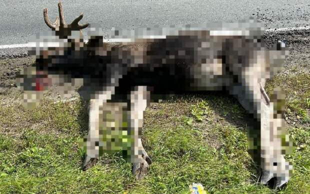 Происшествие произошло на дороге «Касимов — Подлипки». На кадрах виден труп животного и повреждения на лобовом стекле машины.