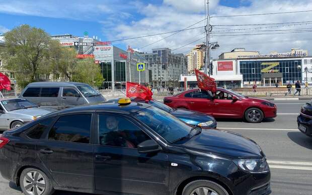 Участники ехали с флагами - российским триколором, Знаменем Победы, флагами ВДВ. Многие водители разместили на стеклах автомобилей портреты дедом и прадедов в рамках акции "Бессмертный полк".