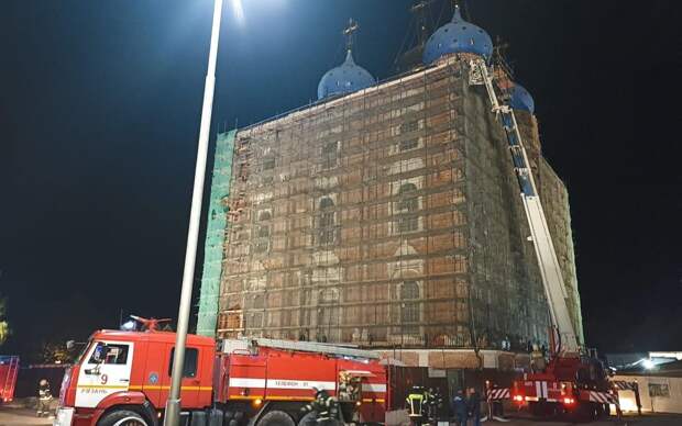 Сообщение о возгорании на кровле собора поступило в понедельник, 25 сентября, в 19:36. На вызов выезжали 15 единиц спецтехники и 45 человек личного состава.