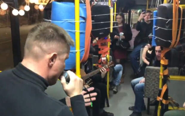 По кадрам видно, что на концерт пришли около 20 человек.Необычный формат организаторы объяснили так: «На автобусе же ездить можно».