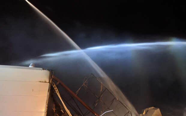 Воду заливали через дыру в здании, расположение пожарных гидрантов нареканий не вызвало.Полчаса назад пожар локализовали. Открытое горение продолжается в отдельных очагах. Прогнозов спасатели пока дают. Также пока точно неизвестен очаг возгорания.