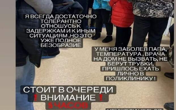 «У меня заболел папа, температура, врача на дом не вызвать, не берут трубки, пришлось ехать лично в поликлинику. Стоит в очереди пять часов. Неужели нельзя навести порядок в больницах», —возмутилась девушка.