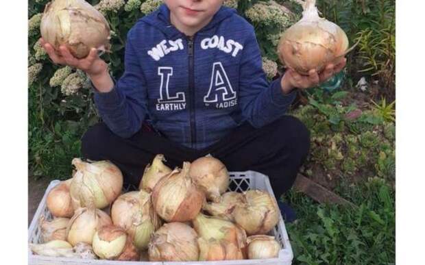В мае местная жительница высадила лук в грядки и ухаживала за ним, в результате чего у неё выросли луковицы-гиганты.