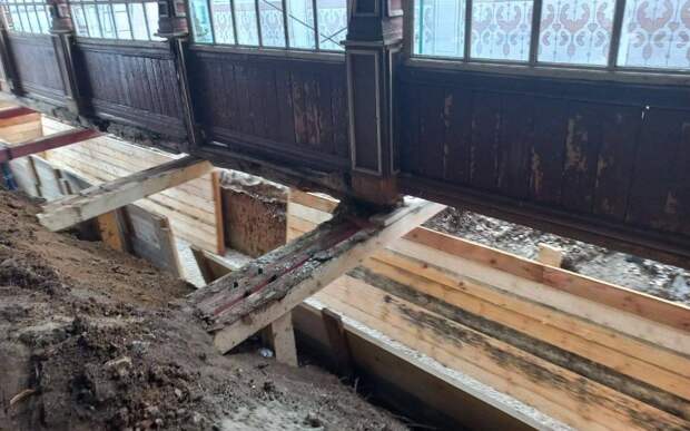 Бюст Ленина обнаружили под вскрытыми полами. Также в ходе подготовки к реставрации выяснили, что Центр народного творчества мог «сложиться» от сильного дождя или снега.