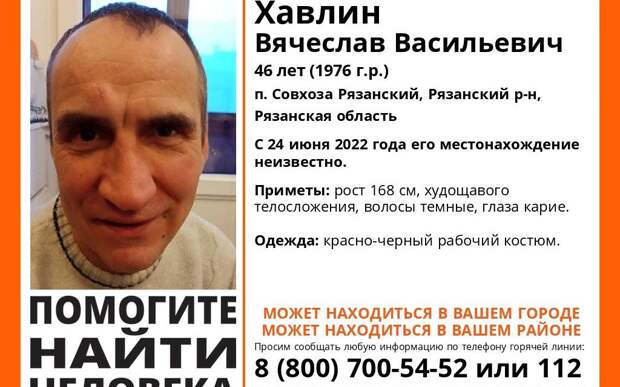 Рост мужчины составляет 168 сантиметров, худощавого телосложения, карие глаза, тёмные волосы. Пропавший был одет в красно-чёрный рабочий костюм.