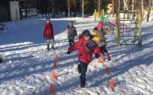 Во вторник, 1 марта, спортшкола олимпийского резерва «Юность» провела весёлые старты для детей. На снегу выставили оранжевые конусы для создания импровизированного препятствия. Дети должны были с мячом быстрее своих соперников преодолеть полосу препятствий.