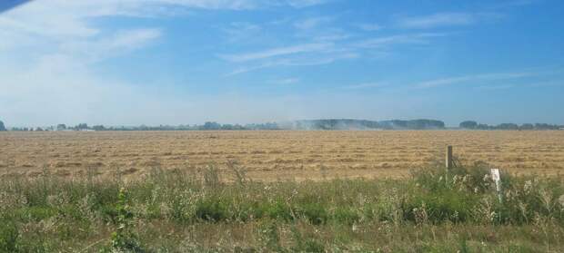 На кадрах видно, что над полем поднимается дым. Уточняется, что возгорание произошло неподалёку от деревни Кульчуково.