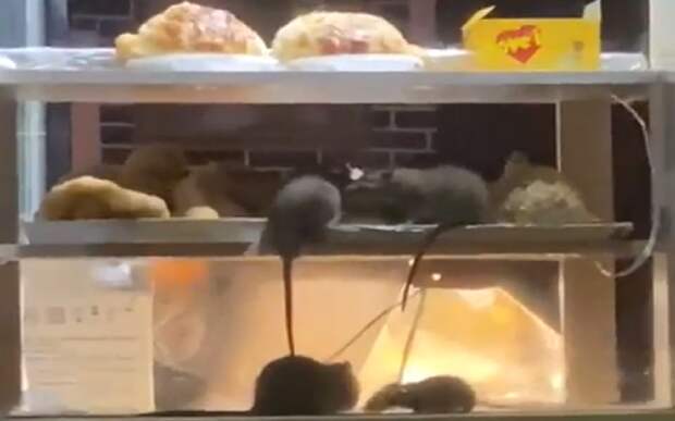 Автор фото утверждает, что заснял происходящее в одном из торговых центров Горрощи: "Уважаемая администрация ТЦ ,,Полетаевский" и арендаторы продуктовых товаров и быстрого питания, обратите ВНИМАНИЕ!!! На торговых точках творится полный ужас, по прилавкам бегают стадами крысы".