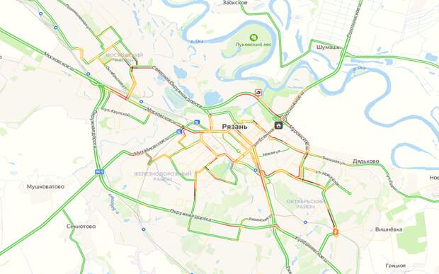 Серьёзно осложнено движение в центре города и на выездах из микрорайонов. Значительные дорожные заторы на Московском и Касимовском шоссе, крайне сложно выехать из Канищева.