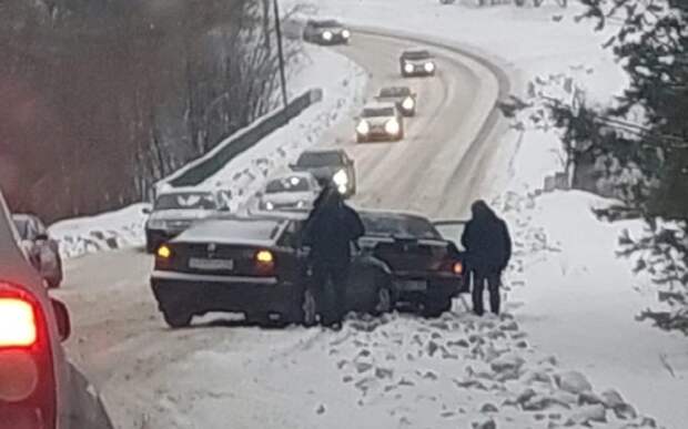 Авария произошла 14 декабря на дорожном спуске - у местных этот участок дороги называется "горой". Судя по всему, одним из факторов происшествия могли стать погодные условия и состояние дороги. Машины получили повреждения, о пострадавших не сообщается.