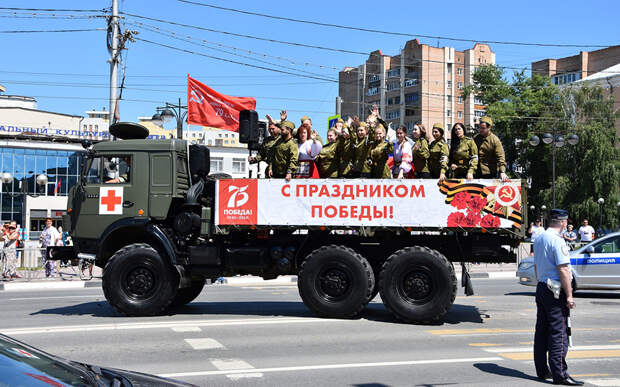 Он начался в 12:10 и продолжится до 16:00. Машины с музыкантами проедут по улицам города с военно-патриотическими песнями.