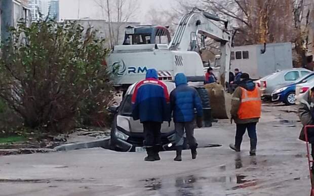 Инцидент произошёл на улице Новой. Чёрный автомобиль провалилась под асфальт.