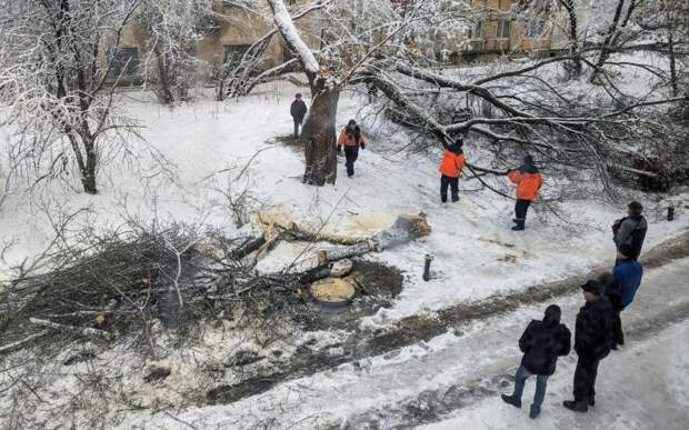 Первомайская, дом № 105 (10 деревьев).Кроме того, рабочие убрали упавшие на контактные сети ветки на перекрёстке улиц Маяковского и Свободы и спилено дерево на Народном бульваре.