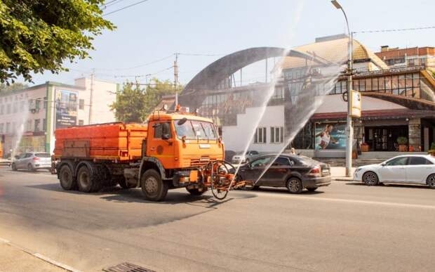 14 июля поливомоечные машины курсировали по центральным улицам с 7:00 до 16:00. Следующая смена с 22:00 до 7:00. Всего на городских улицах работают 5 поливомоечных машин.