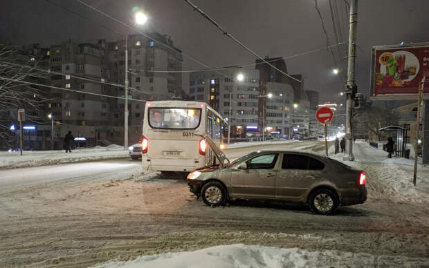 Авария произошла вечером в среду, 28 декабря. Автор фото отметил, что на данном участке дороги это не первое ДТП, когда водители «не смотрят по сторонам и попадают под автобус».