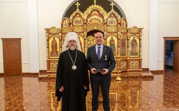Вице-губернатор Рязанской области Артем Бранов получил из рук владыки медаль преподобного Сергия Радонежского.
