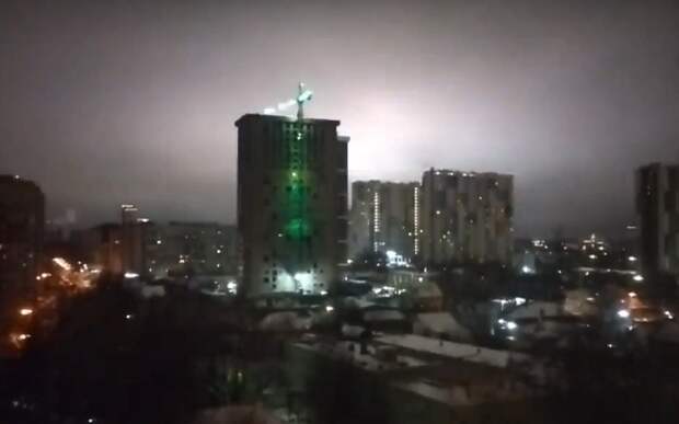 В комментариях поясняют, что явление достаточно частое. Как правило, в непогоду обледеневшие провода могут искрить, а из-за водяной взвеси в воздухе вспышки видны издалека - свет отражается в капельках воды.