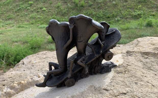 Последняя точка – «Влюблённая пара» на Театральной площади. Фигурка представляет собой два грибочка, ценящих совместные культурные походы. Именно поэтому она расположена напротив Рязанского театра драмы.