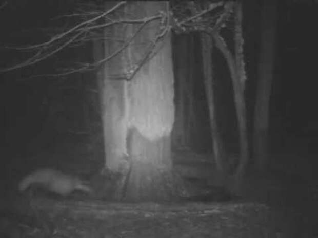 В ролике видно, как довольно упитанное животное прогуливается ночью по лесу.
