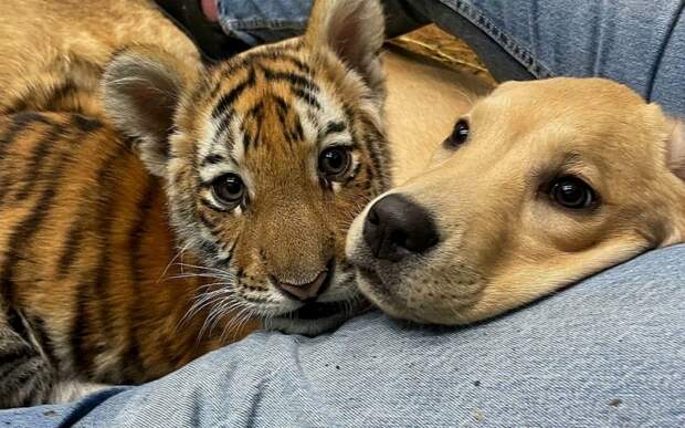 Животных подселили к щенку лабрадора Эльзе и трёхлапому львёнку Фортису. Первый тигрёнок оказался в вольере около месяца назад. Второго привезли накануне.