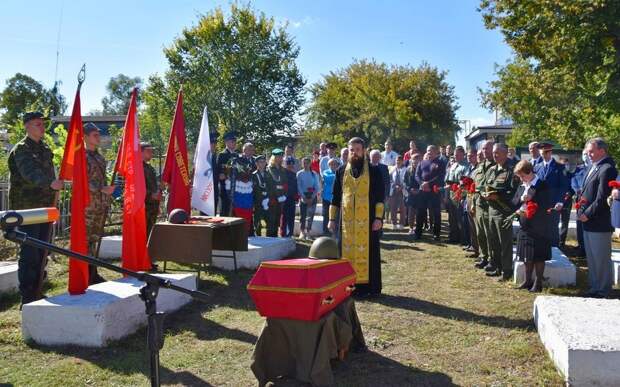 Найти родственников помогла спасский краевед Ольга Бируля. На церемонию приехали внуки и правнуки из старожиловского села Истье. Им передали найденные на поле боя вещи красноармейца, в том числе каску и записку из медальона.