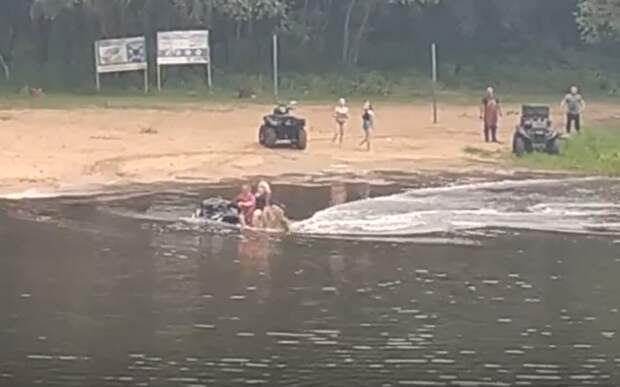 Очевидцы засняли катающиеся на полной скорости квадроциклы, которые заезжали в воду Видно, что на пляже есть дети.
