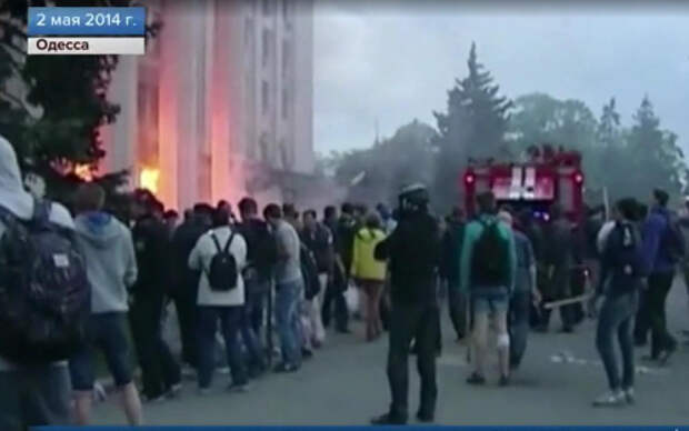 Националисты, как передаёт Первый телеканал, загнали туда людей и подожгли здание. Также говорится, что радикалы применяли боевые отравляющие вещества. Один из пострадавших, Юрий Диденко, сказал, что «это была химия непонятного производства, по моим рукам я могу судить, что там был фосфор».«Многочисленные сцены жестокости транслировали в прямом эфире: как стреляли по тем, кто выпрыгивал из окон, добивали раненых, которые пытались буквально выползти из здания. А тех, кто истекал кровью, отправляли не в больницы, а в отделения милиции», - сказали в эфире.