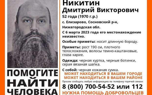 О Дмитрии Викторовиче Никитине нет информации с 6 марта. Он проживает в селе Елизарово Сосновского района Нижегородской области.