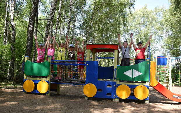 На субботнике жители разровняли место и завезли песок. В течение двух недель подрядчик установил все элементы детской площадки.