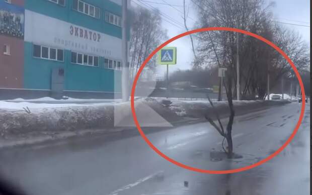 Судя по видео, «дерево» выросло на месте отсутствующего люка. Рязанцы предположили, что люк или украли, или сломали.