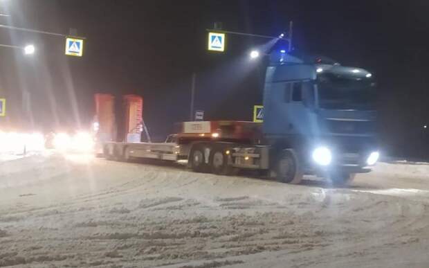 На помощь дальнобойщикам прибыли полицейские и дорожники. Две комбинированные машины с песко-соляной смесью обработали дорогу, а автоинспекторы обеспечили проезд по одной полосе.