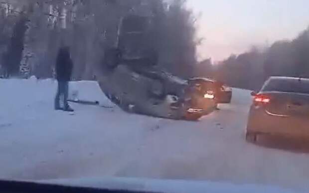 Судя по кадрам, автомобиль перевернулся, одна из полос проезжей части оказалась заблокирована. Движение на участке затруднено. Информация о пострадавших пока не поступала.