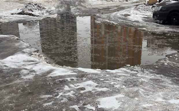 Ливневой канализации в городе недостаточно, так что стекать лужам местами просто некуда. Те ливневки, что есть, часто скрыты подо льдом и толстым слоем снега.