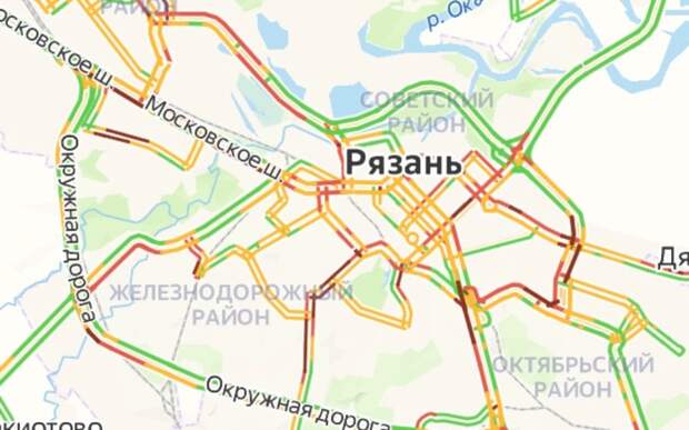 Затор наблюдается на улицах Зубковой, Советской Армии, Тимуровцев и Касимовском шоссе.