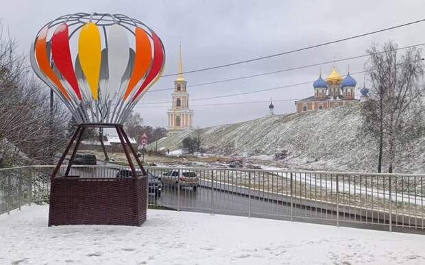 Макет воздушного шара из металла с фестиваля «Небо России» на время праздников переехал в областной центр и теперь стоит вблизи кремля.