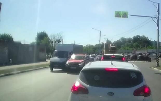 Авария произошла утром в среду, 24 августа. На кадрах можно заметить, что иномарка выезжала с прилегающей территории и врезалась в грузовик.