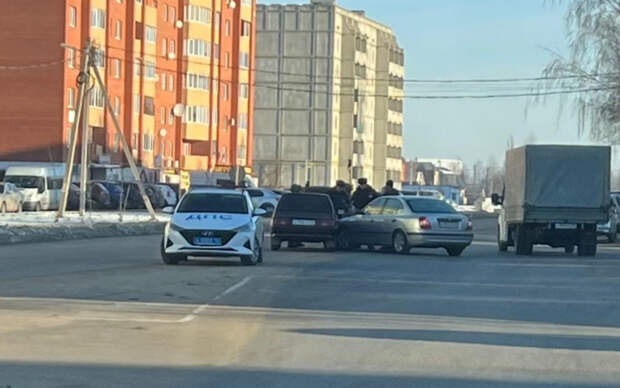 Автор фото уточнил, что ДТП произошло возле поликлиники. Подробности уточняются.