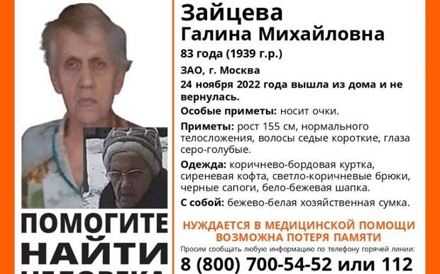Носит очки. С собой у женщины была бежево-белая хозяйственная сумка.Всех, кому известна информация о пропавшей, просят обращаться по номерам 8 800 700 54 52 или 112.