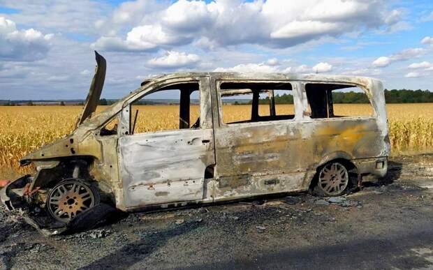 Никто не пострадал. От машины остался только каркас.