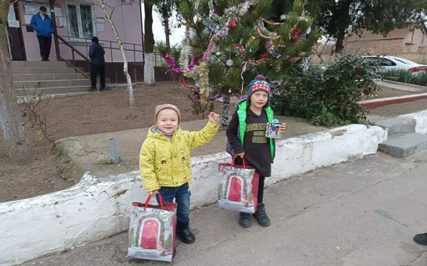 О передаче подарков пишет Телеграм-канал "Новая Каховка". Малыши в праздник Рождества получили пакеты со сладостями.