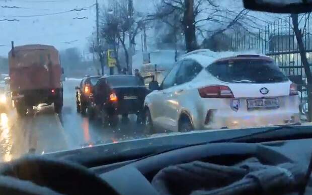 По словам пользователей сети, авария произошла утром 8 декабря на улице Чкалова. Столкнулись три автомобиля.