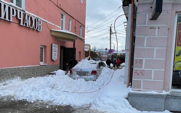 Происшествие произошло неподалёку на Соборной улице. Масса снега смяла крышу автомобиля и вдавила внутрь заднее стекло. Очевидцы добавили, что к месту ЧП приезжала скорая помощь.
