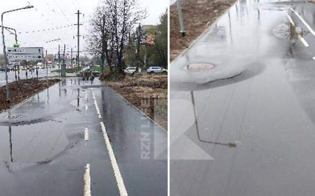 На кадрах можно заметить, что в асфальте образовалась впадина.